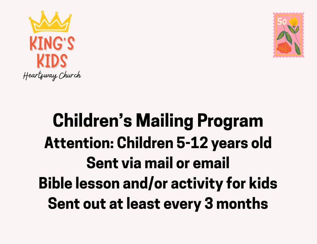 New program where children (parent) can sign up to receive Christian lessons and activities at their home or directly to their parent’s email to print.